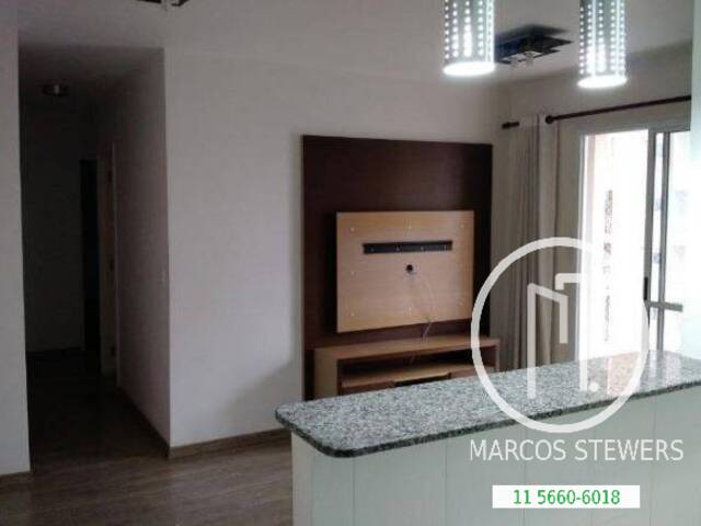 São 62 m², 2 dormitórios, 1 suíte com varanda, sala para 2 ambientes, cozinha americana com armários, área de serviço, varanda na sala e 1 vaga de garagem coberta.