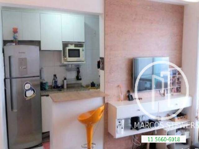 Apartamento com 46 m², 1 dormitório, sala, varanda, cozinha americana com armários, área de serviço, 1 vaga de garagem. Em ótimo estado e acabamento
