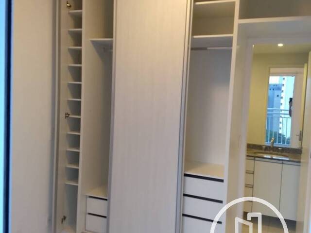 Stúdio com excelente acabamento, são 31 m², piso laminado, armários embutidos, ar condicionado e varanda fechada com vidro.
