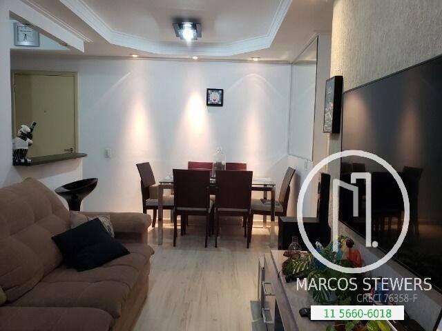 Apartamento 100% mobiliado. São 50 m², 2 dormitórios, sala para 2 ambientes, armários embutidos, sacada, cozinha, área de serviço, 1 vaga de garagem.
