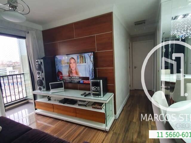 São 50 m², 2 dormitórios, sala para 2 ambientes, armários embutidos, sacada, cozinha, área de serviço, 1 vaga de garagem..