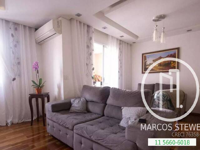 São 80 m², 2 dormitórios (3º reversível), sendo 1 suíte, sala ampliada, armários planejados, cozinha americana, varanda com churrasqueira, 2 vagas de garagem.