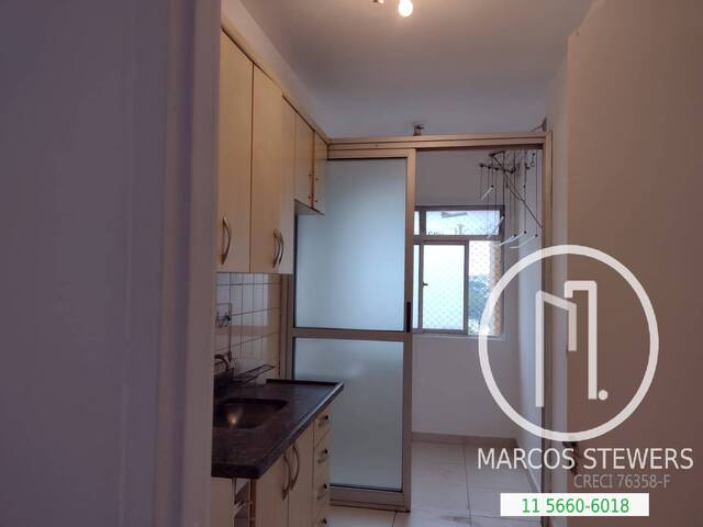São 68 m², 3 dormitórios, sala para dois ambientes, sacada, cozinha, banheiro, área de serviço e 1 vaga de carro.