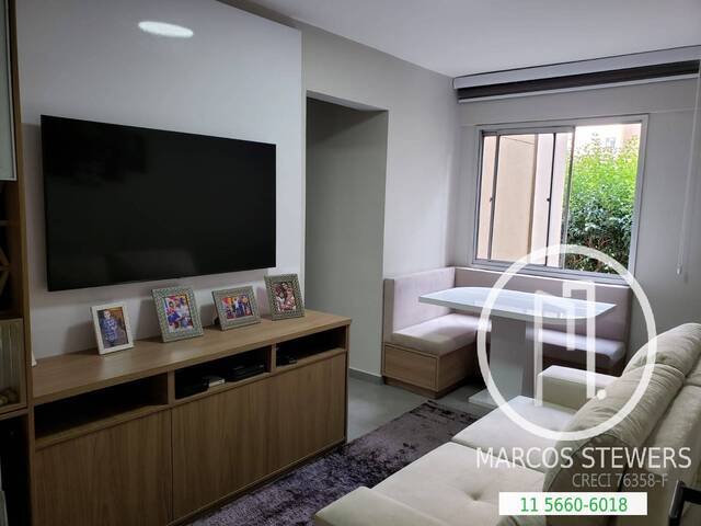 São 49 m², 2 dormitórios, sala para 2 ambientes, cozinha, área de serviço, 1 vaga de garagem.