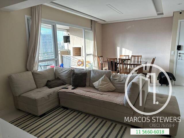 São 88 m², 2 dormitórios, sendo 1 suíte, closet, living para 2 ambientes, varanda gourmet, cozinha planejada, área de serviço, lavabo, 2 vagas (escrituradas, um carro na frente do outro).