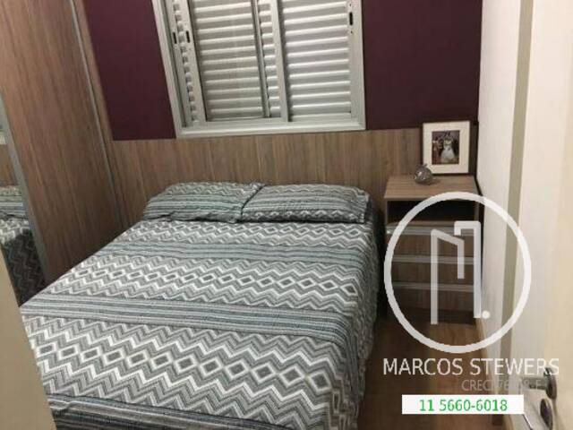 São 52 m², 2 dormitórios, sala para 2 ambientes, cozinha planejada, área de serviço, 1 vaga de garagem