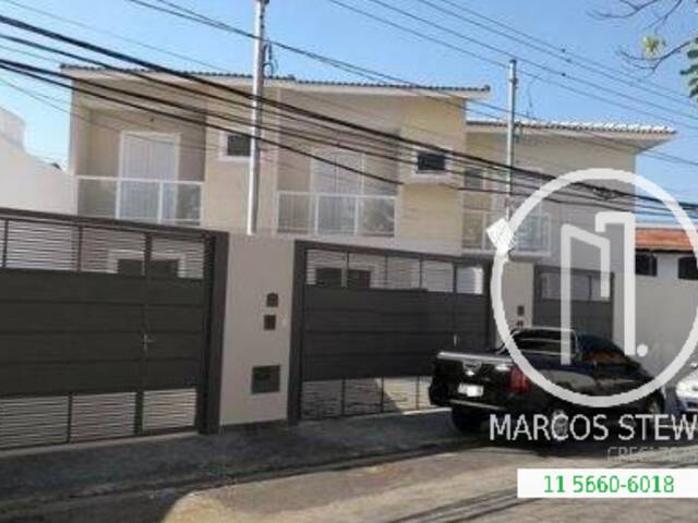 São 90 m² de terreno e 55 m² de área construída, 2 suítes, sala de estar/jantar, cozinha, lavabo, área de serviço, churrasqueira, 3 vagas de garagem