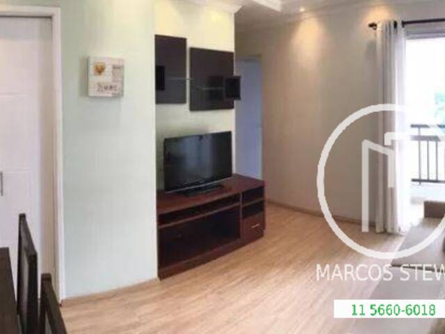 Mobiliado: Armários embutidos, cozinha completa (geladeira, fogão, microondas, depurador, filtro Europa) mesa e 4 cadeiras, cama box casal, TV 32 polegadas, Rack, Painel, sofá, cortinas, máquina de lavar roupas.