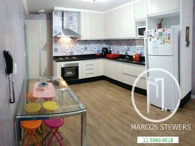 São 70 m², 2 dormitórios, sala para 2 ambientes, cozinha planejada, lavanderia, quintal, área gourmet com churrasqueira, 2 vagas de garagem.